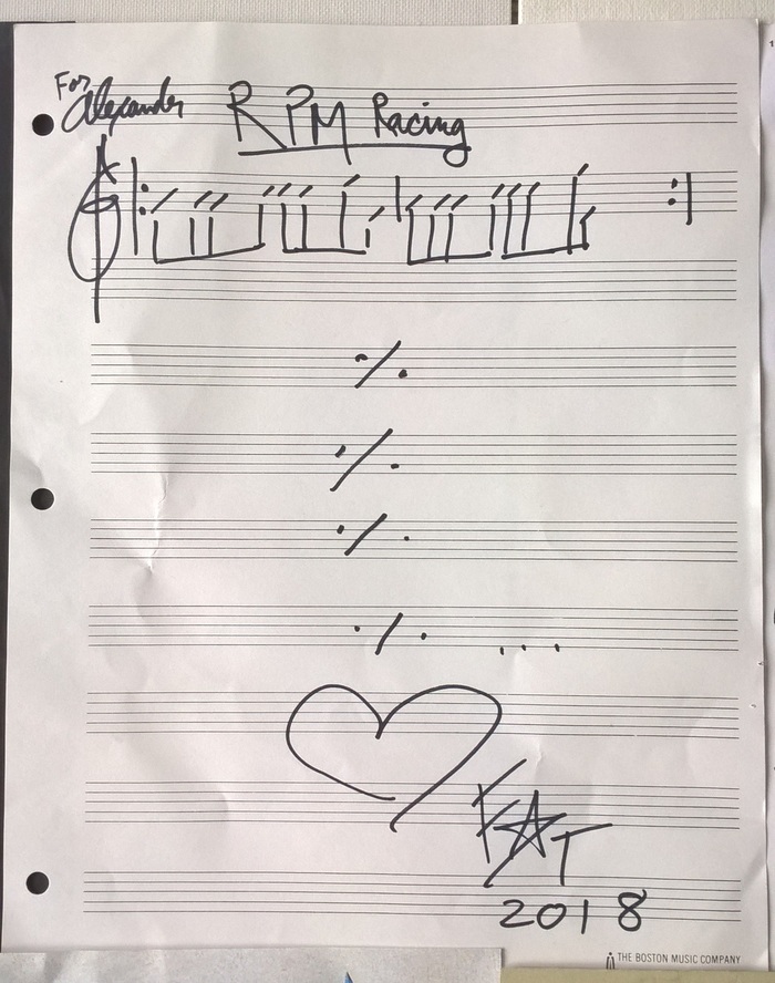 Переходя к письму, отмечу что оно пришло в слегка помятом виде, но не в таком критичном, как показалось на первый взгляд. Честно говоря, я подумал что внутри будет пара подписанных листов и на этом все, но композитор меня все-таки удивил, помимо листов с автографами, внутри оказалось небольшое послание, часть написанных от руки нот и маленькая цветная раскраска-комикс, выпущенная композитором в начале 90-х годов, я конечно не фанат таких вещей, но выглядит прикольно, особенно если учесть что она тоже с автографом :)