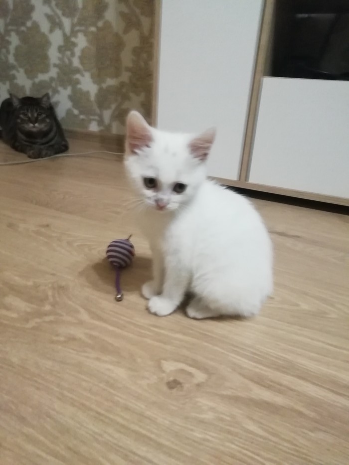 Котейка от паразитов обработана, к туалету оказалась приучена. да и вообще умненький котик, минусов почти нет. Разве что девочка.