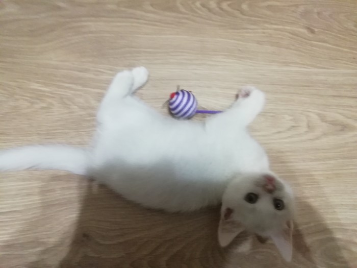 Подкинули милашку прямо под дверь. Когда я стала причитать и улюлюкать над этим зайчиком, предлагать проходящим соседям, те предложили котейку выставить на улицу, а это верная смерть (оч много собак).