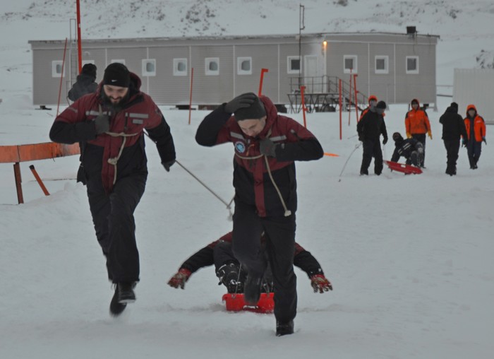 Климатические условия в этом районе достаточно благоприятные по сравнению с самим материком. Если скажем у нас зимой температура воздуха не опускалась ниже -25, то вот на станции Восток она могла достигать с легкостью отметки в -70. В основном же зимой у нас было почти как в средней полосе России с температурой -10-15 и очень сильными снегопадами. Единственное, что действительно могло напугать – так это очень сильные порывы ветра, дующие обычно или с Дрейка в сторону материка или наоборот, остальные направления бывают очень и очень редко. Самый сильный ветер какой мне удалось наблюдать был в районе 20-25мс и с порывами до 35мс. Чтобы понять силу такого порыва – он уже может отрывать со зданий сайдинговые панели, сдувать рубероид с крыш домов и даже повалить человека. В прошлом году при таких и даже чуть больших порывах ветра, например, унесло часть металлической крыши с небольшого ангара. В вот летом температура редко опускается ниже отметки в 0 градусов, но из-за повышенной влажности и солнечных дней бывает не так много, как хотелось бы, а так довольно много туманов.