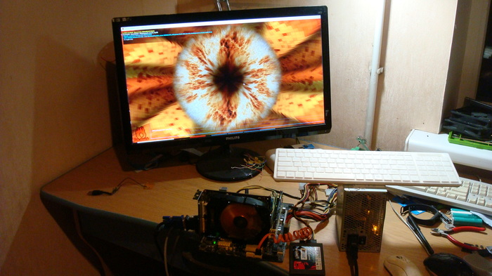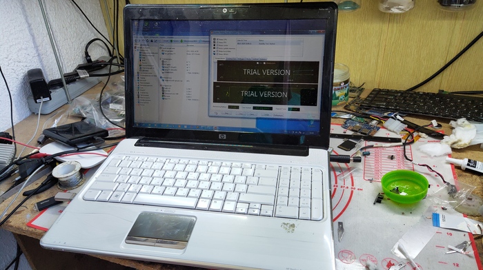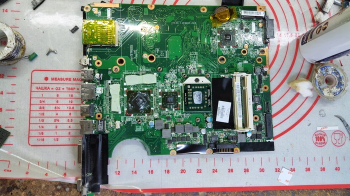 Проверяем навесом, у меня стол рабочий занят гемморойным ноутом, который чистили и что то закоротили с ним я еще борюсь, там накидано всякого. шимок мертвых, боюсь нарушать творческий беспорядок, потому идем на кухню, где есть место, проверяем для начала на тестовой матрице, кино появилось. В принципе и кухня засрана, до сих пор удивляюсь как жена меня нахер из дома не выгнала.