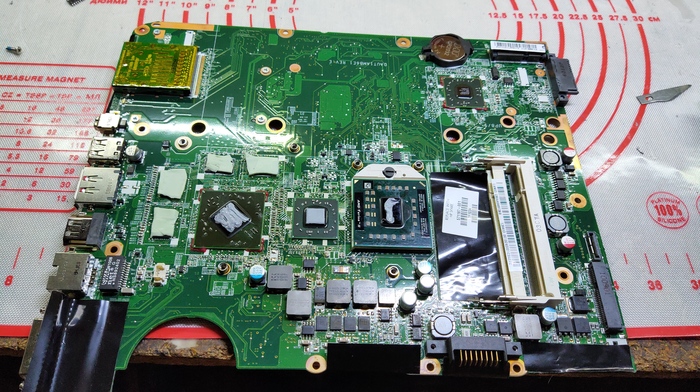 Согласовываем замену хаба и матрицы. Как только соглашаются, снимаем хаб, а там залитие в угол хаба, сгнили пятаки и на хабе и на мамке, зачищаем.