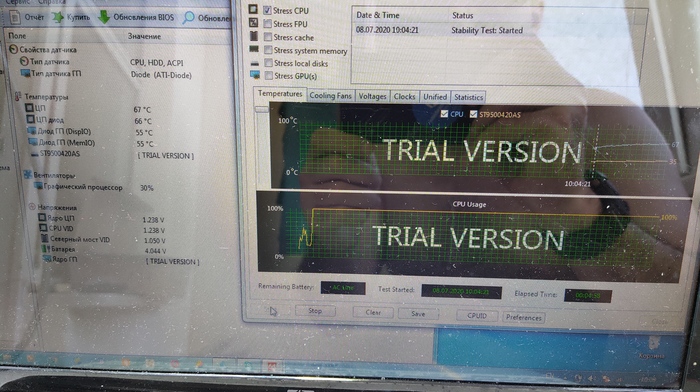 Поскольку тестер у меня на работе, а делаю я это дома, то выбираю вариант нажарить север, 300 попугаев, секунд 15 обычно хватает. Ноут тут же проходит пост процедуру и выводит изображение.