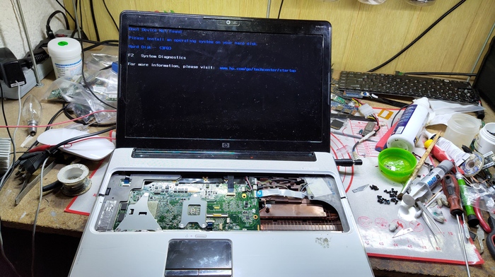 Притащили мои оптовики, такой себе ноут HP DV6 старый, вроде 2000-й серии. На вопрос что с ним, сказали не включается.
