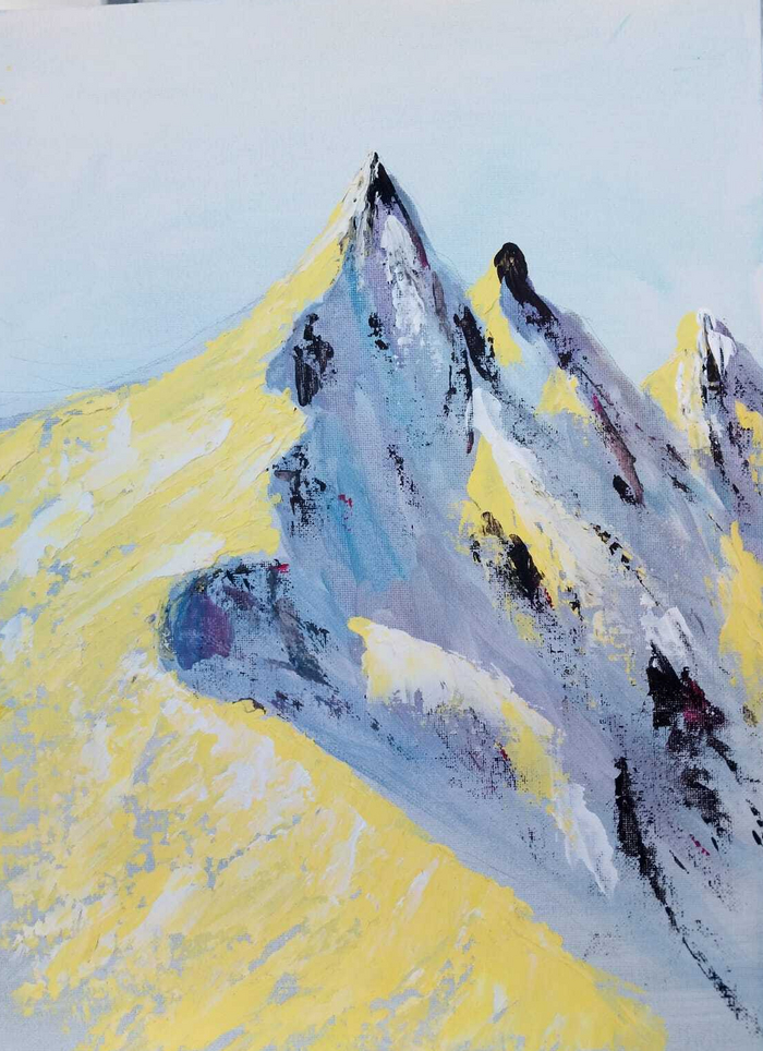 Первая работа рисование гор маслом- вроде пока рисовал нормально зашло но чем дальше тем все хуже и хуже). Думаю както надо эту границу найти когда -все хватит и -уже в грязь пошел.