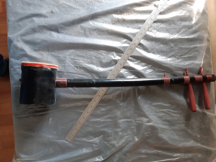 Мы знаем что общая длина инструмента 81 см, размер груши 10 см. Оригинал изготавливается из бамбука, груша перетягивается змеиной кожей. Отрезаем пластиковую трубу ( я использовал 25 трубу ) Грушу тоже делаем из пластиковой трубы диаметром 100 мм.