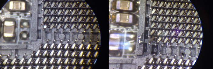 Но это еще не все проблемы. Процессор так же оказался повреждён. Сбито несколько smd-компонентов