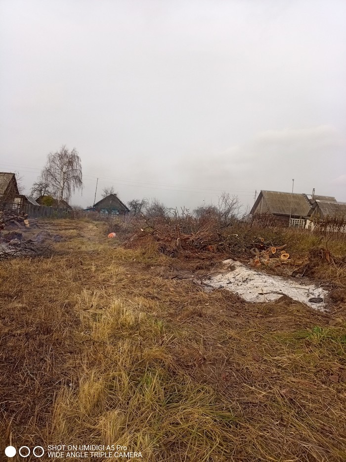 Участок после был скошен, частично выжжена трава. И теперь весь мусор ветки и дом надо убрать что бы можно было запроектировать дом и начать строительство.
