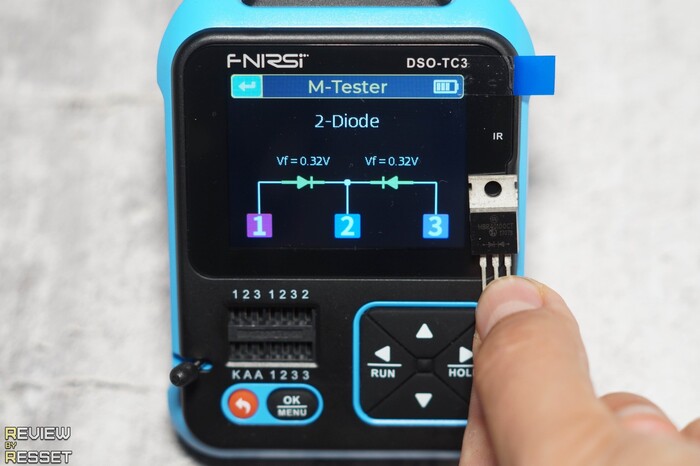 Диапазон измерения температуры определяет границы, в которых можно произвести замер, в бюджетном сегменте чаще встречаются модели от -20°C до 600°C и как правило, в настройках имеется параметр, позволяющий выбрать между высокой точностью и широким диапазоном свыше 200°C. Ниже пример с жалом паяльника, нагретым до 250°C.