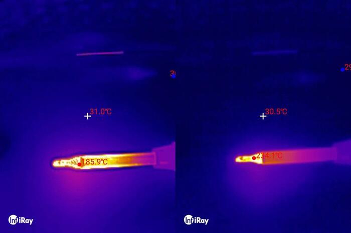 При выборе тепловизора в первую очередь смотрите на разрешение и чувствительность матрицы, от большого количества пикселей будет мало пользы если соседние всё равно будут сливаться друг с другом. Для мастерской оптимально 256x192 и 40-60мК, что-то лучше будет уже ощутимо дороже.