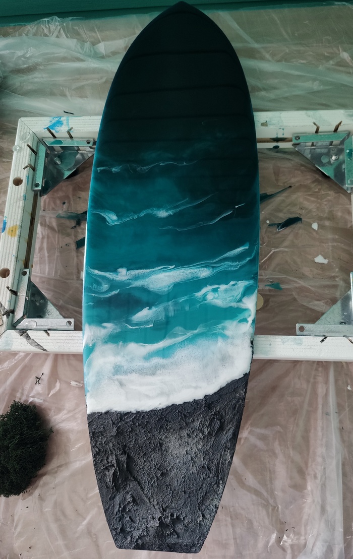 Следом было залито два слоя эпоксидной смолы, проведена кропотливая (нервная) работа над волнами