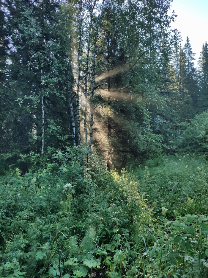 Всем привет! Мне тут захотелось сотворить что-то новенькое, поэтому, насмотревшись в Пинтересте на крутые фотки Северного сияния, я решила создать своё :) С тёмным ночным лесом и звёздным небом)