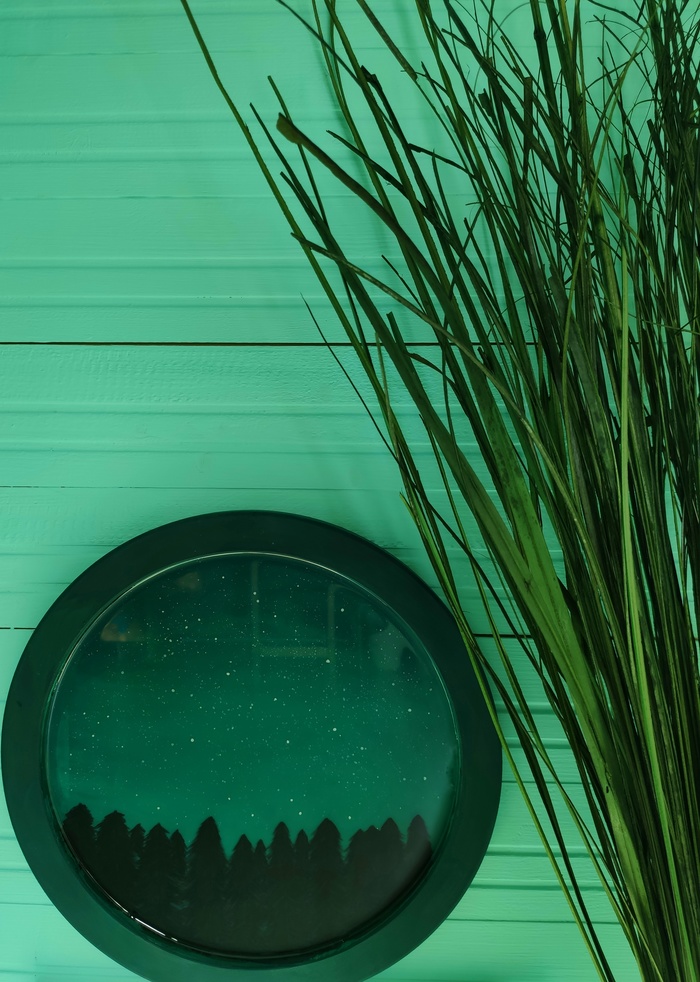 В работе использовала эпоксидную смолу, красители для смолы, люминофор, акриловые краски, маркер)