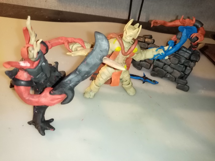 Riddler91 Немного лепки 5 лет назад Люблю лепить с детства. Вот что иногда выходит.Демон толкает речь и заговаривает зубы рыцарю. Пока демоненок, с волшебном мечем пытается нанести удар. Но план был раскрыт и демоненок получает заряд магии в живот. Показать полностью 2 [моё] Пластилин Лепка Ещё 0