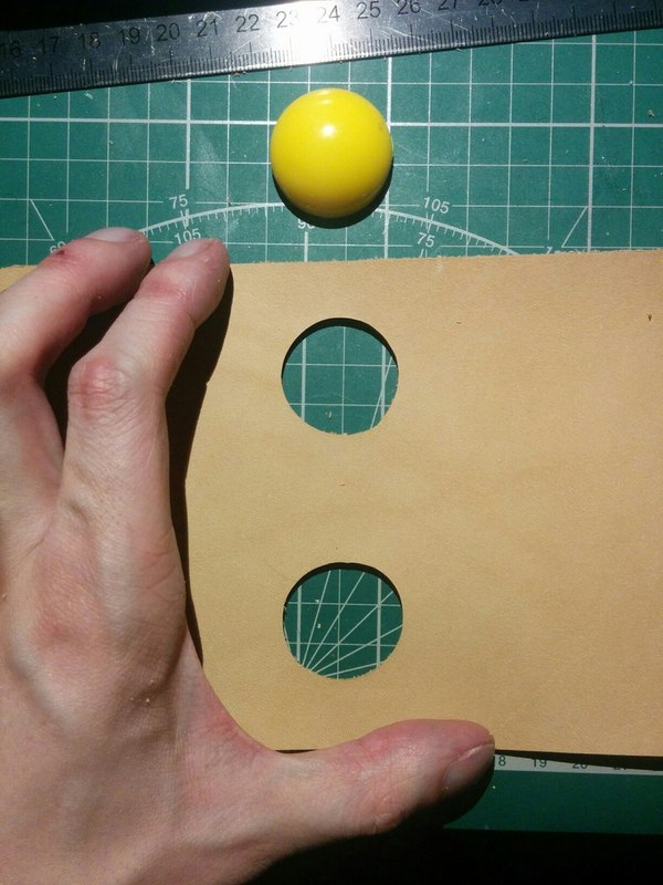 Традиционно порастраивавшись пару дней приступил к вырезке новых деталей. Чтобы ровно вырезать нарисовал в автокаде выкройки, распечатал, накладывал на кусок кожи и прокалывал все углы. Забегая вперед скажу что все равно размер изменяется при нагревании утюгом, поэтому некоторые детали пришлось растягивать.