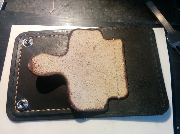 Вырезал и выжег все кармашки и приступил к пришиванию к внутренней основной детали.