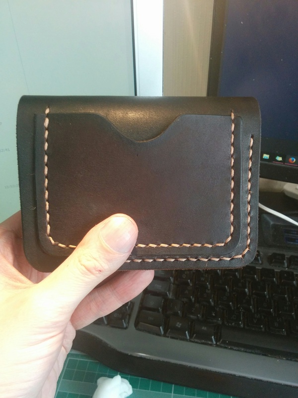 Так же на неудавшемся варианте попробовал покрасить торцы в черный - кошелек принял более завершенный вид.