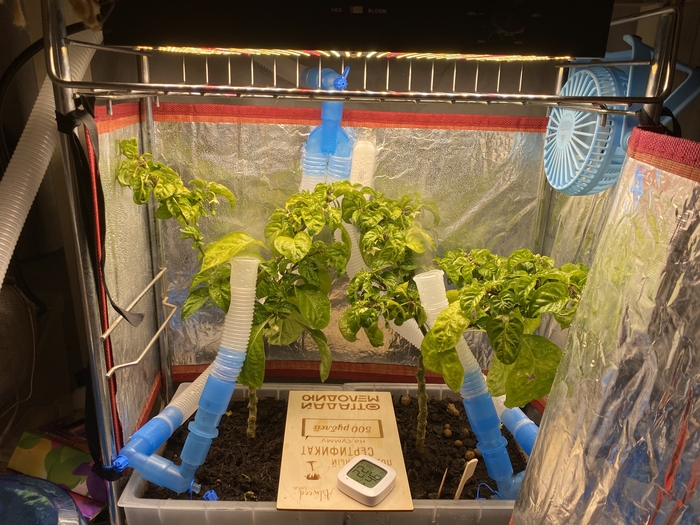 Сконструировал у хабанеро систему для анализа дренажа, чтобы не вынимать горшок каждый раз для замеров. Так как пару раз ловил мощный засол, понял, что это маст хэв. Механизм прост, шприцом 20 мл набираешь по трубке содержимое дренажа, переливаешь в банку и оцениваешь.