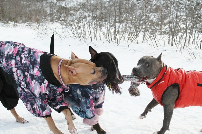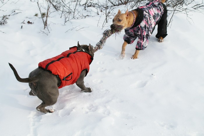 Основной контингент у нас так называемые "бойцовые" породы. Они оооочень бойцовые. Особенно эта, на переднем плане. Ее все валяют, а она как настоящая "бойцовая" всех учит играть мирно. Пацифистка