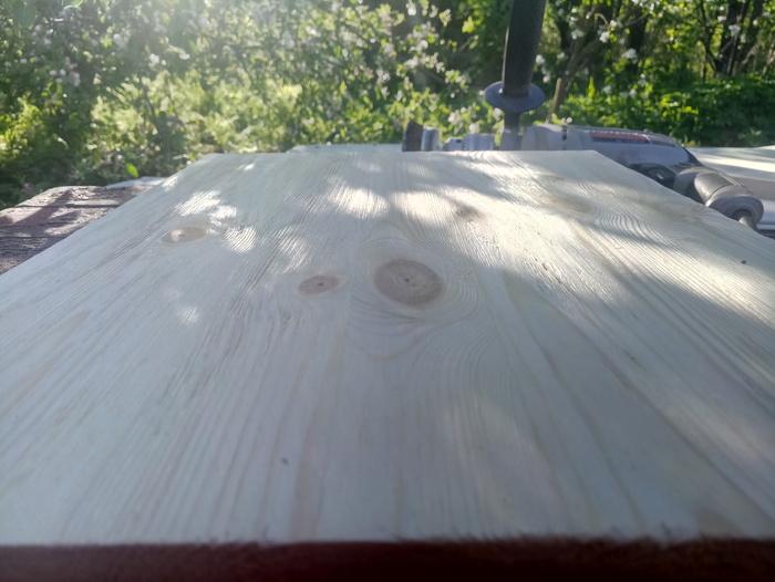 Я советую вам выбирать необработанный мебельный щит нужной толщины ( у меня 2 см). Его можно обрезать до необходимых размеров, зашкурить и обработать.