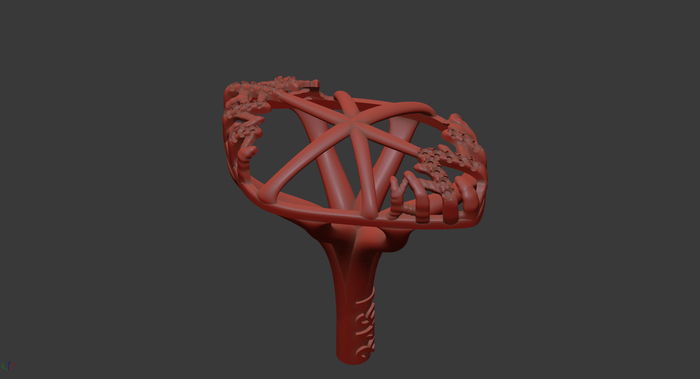 Откровенно говоря, это произведение сумрачного гения, находится где-то на грани адекватности. Очень тонкие элементы, очень сложно в сборке. У меня были серьезные подозрения, что вся эта шляпа просто не отпечатается на 3д принтере. А если и отпечатается, то потом не отольется в гипсе. А если даже и отольется, то развалится при сборке. Я уже молчу о том, что это было очень сложно моделировать. Не помню точно, но кажется, я возился с этой моделью целую неделю. Но ювелир был очень уверен в себе. Сказал - будем пробовать. Не получится - придумаем что-нибудь другое.