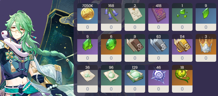 Аль-Хайтам - С0, оружие - R5 Токабо сигурэ (ивентовый меч), таланты 9/10/8, довольно средние по силе артефакты.