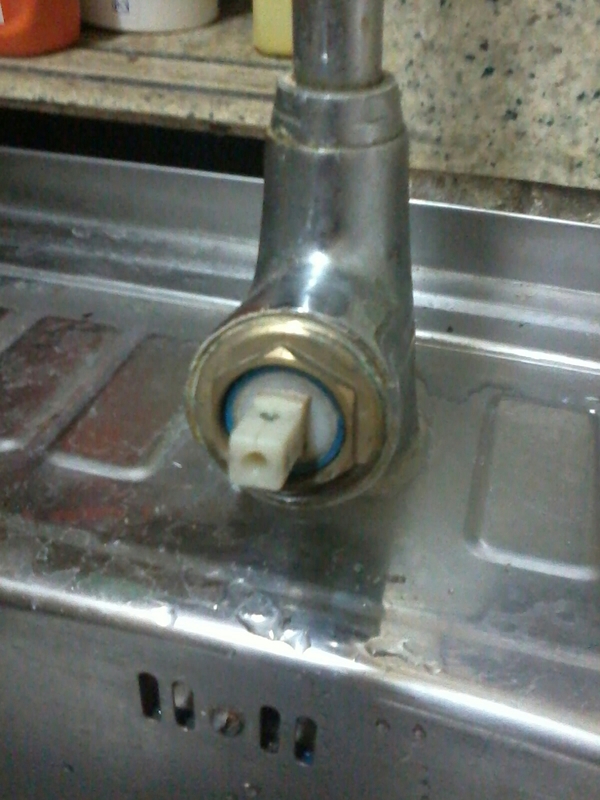 б) вывинчиваем штифт,фиксирующий рукоятку на штоке картриджа.