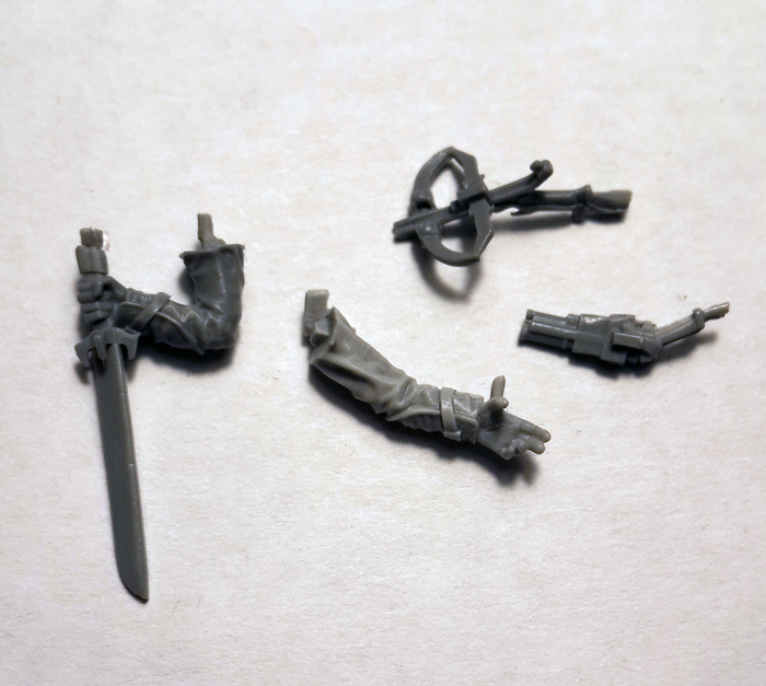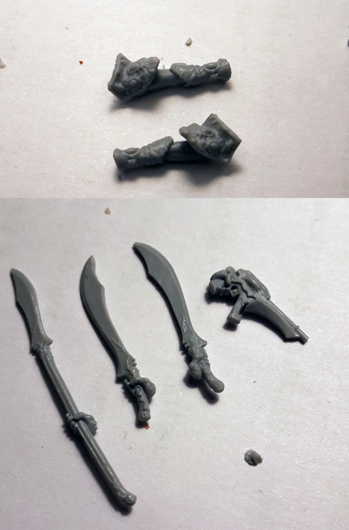 Мечи с разным хватом. Они отличаются по дизайну от меча экзарха. Опять же облоя и косяков проливке деталей меча нет, кроме только их кривизны, благо всё это можно решить горячей водой.