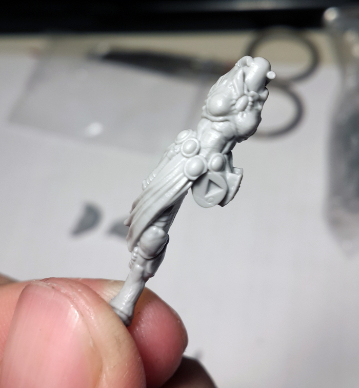 Детализация туловища довольно хорошая, облоя нет, но вблизи довольно заметны слои от 3d принтера. левая нога присоединяется в паз, также на каждом стыке и ногах есть цифры, чтобы определить какой модели принадлежат конечности.