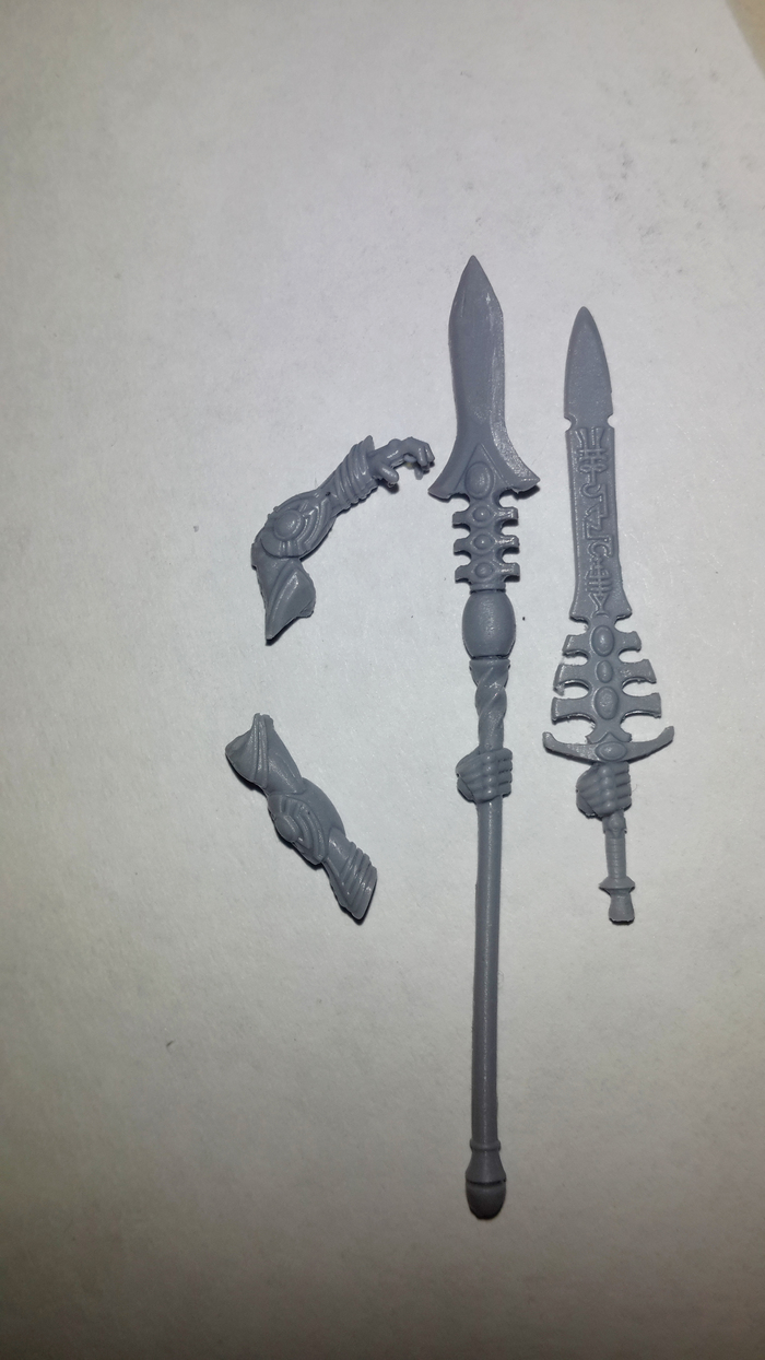 Вот ручки и оружие Махи вблизи, копьё слегка искривилось, но пара секунд в горячей воде исправило ситуацию.