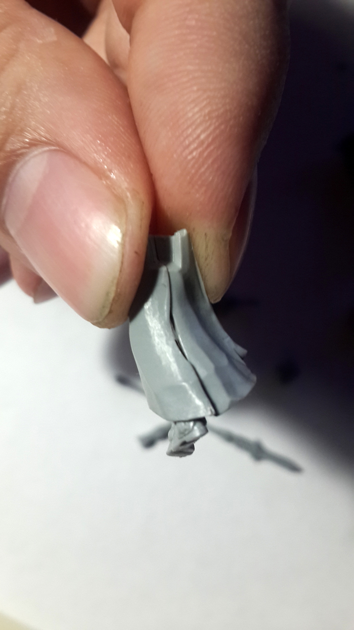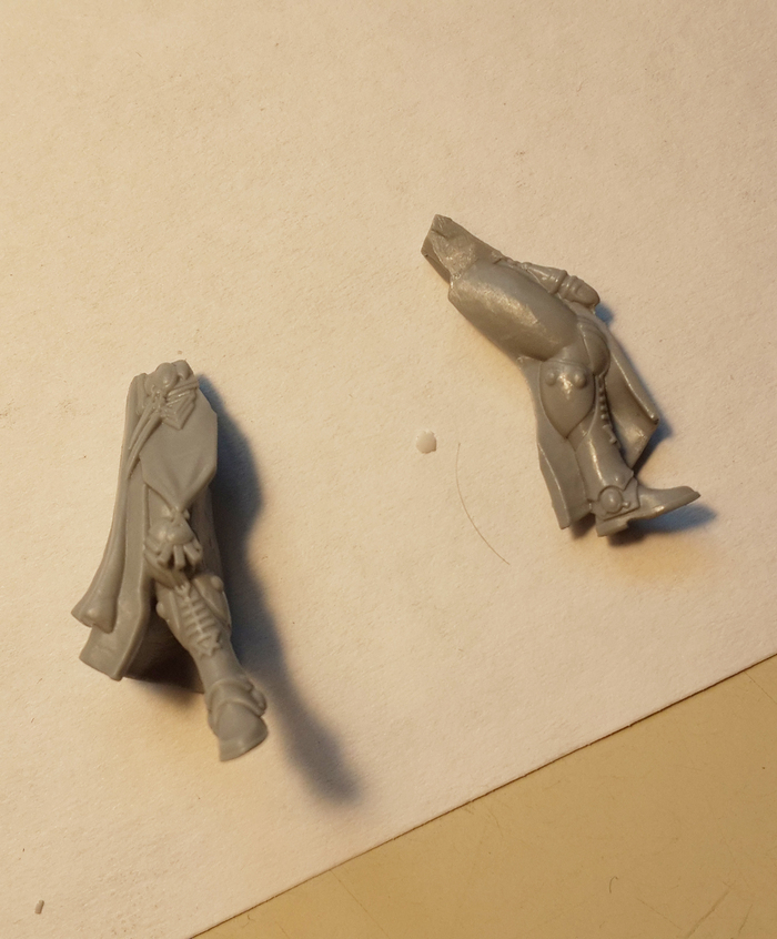 Ну и последняя по счёту, но не по значению, фигурка Каина. Довольно малое количество частей и членение даже приемлемое, кроме, может быть, рук. Облоев, заусенцев нет, но вот целых три толстенных литиевых канальца на плаще, это перебор. Пришлось не хило так напильником поработать.