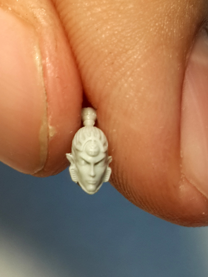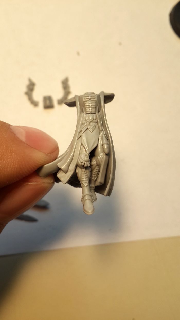 Детали миньки невероятно мелкие (особенно выступающие "антенны" которые надо клеить отдельно) так что надо быть осторожным как в сборке, так и в покрасе. Но даже так, детализация нереально высокая, для смолы, заусенцев и следов от литья почти нет, так что единственная проблема в обработке модели заключена в срезании толстенных литиевых дорожек. Сборка модели вроде не сложная (в плане именно конструкции), но есть вопросы с членением ног. При сведении частей, задняя часть юбки (или плаща, под плащом) не смыкается полностью, имеются также зазоры.