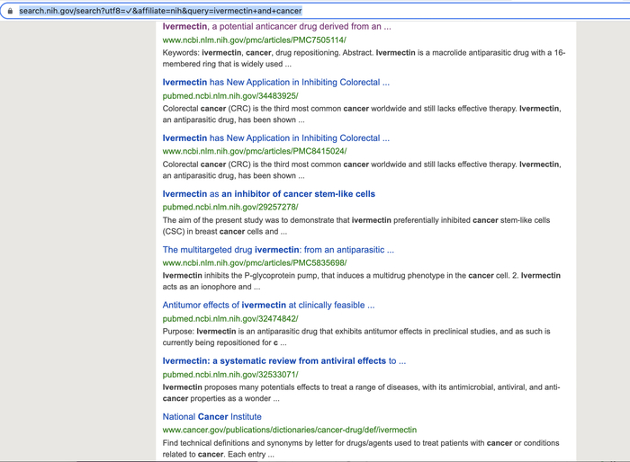 https://search.nih.gov/search?utf8=✓&affiliate=nih&query=ivermectin+and+cancer