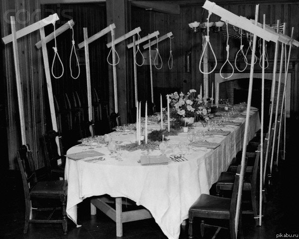 185 Roach42 Обеденный стол обвиняемых на Нюрнбергском процессе 13 лет назад Германия. 1945 год. Интересное