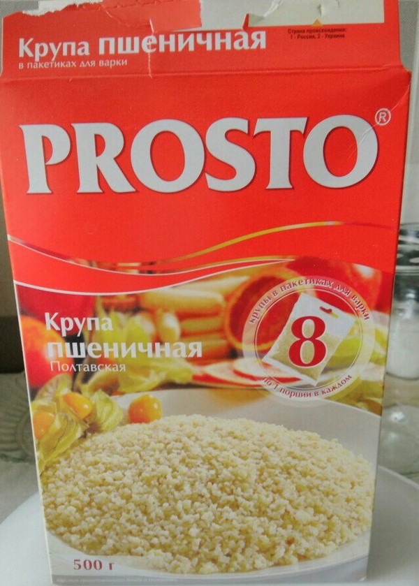 Подарок от фирмы PROSTO - бесплатное мясо в каше(в нижней левой части фото).
