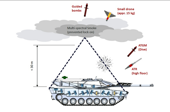 а последний слой состоит из системы активной защиты (APS) Rheinmetall Active Defense System (ADS).