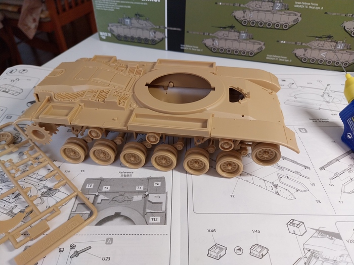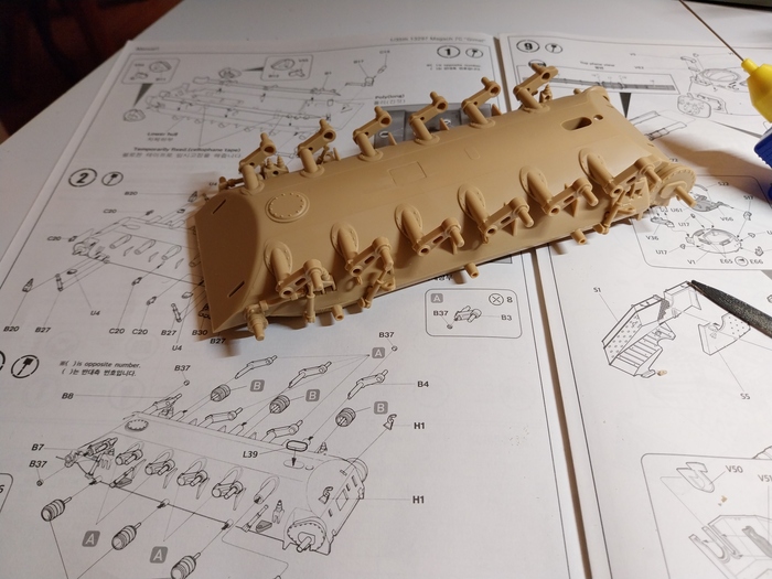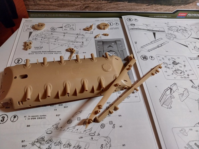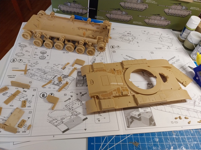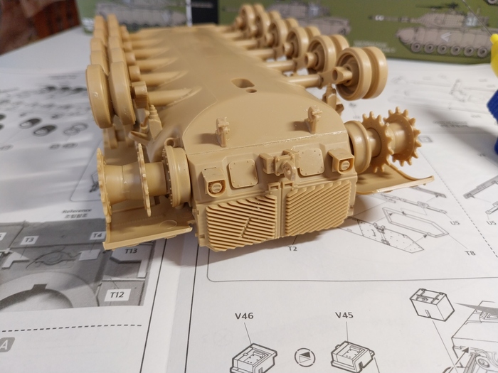 Хорошая модель.Не сложная.Все люки открываются.Минус-не сделали стеклянных перископов.Сам доделывал.Резиновые траки не клеются ничем.Скрепил степлером.Декали глянцевые и толстые.Долго приваривал.