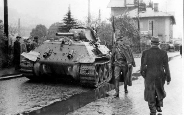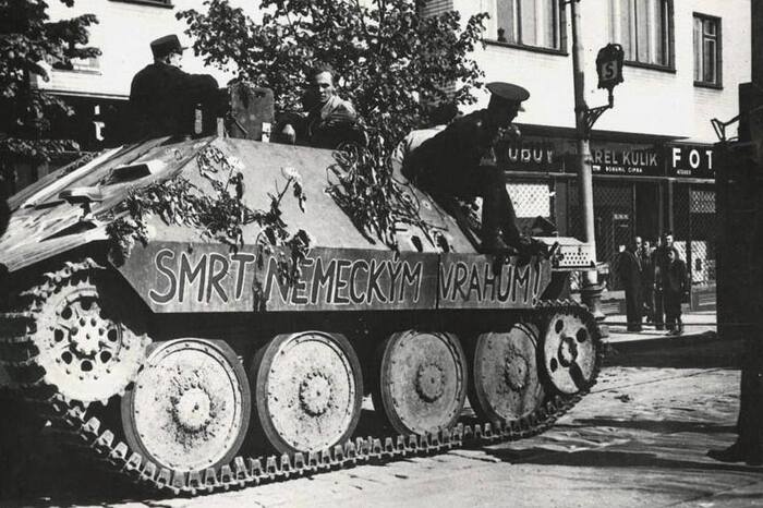 В апреле-мае в Чехии отмечают 80 лет освобождения страны от германской оккупации.Реконструкторы участвуют.Фото от друга.
