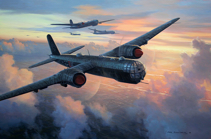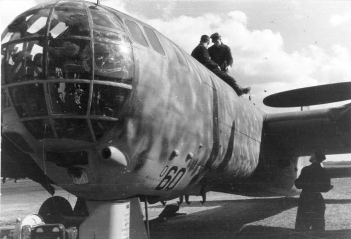 крылом большого удлинения располагался вместительный бомбоотсек. Самолету требовались четыре двигателя по 1200 л.с. (895 кВт} или два по 2400 л.с. (1790 кВт), но в Германии не было моторов последнеготипа. Срочно в сотрудничестве с«Daimler-Benz» компания «Heinkel»