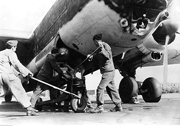 использовать испарительную поверхностную систему охлаждения,уже опробованную на истребителе Не 100 и гидросамолете Не 1 19,также оснащавшемся DB 606. Самолет имел четыре основные стойки шасси, размещенные попарно под двигателями. Одна стойка из пары убиралась с внешней стороны от двигателя, а другая -с внутренней, размещаясь в крыле перед главным лонжероном. Оборонительное вооружение состояло из четырех турелей с дистанционным управлением.
