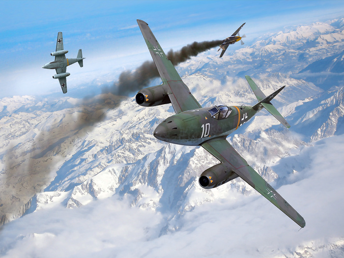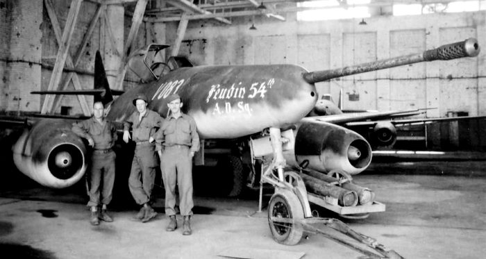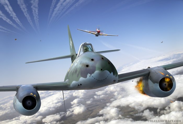 Да и скороподъемность нового истребителя была вне конкуренции - он мог вертикально набирать высоту, что было невозможно для самолетов союзников. Реактивный "мессер" дольше удерживал высокую скорость разворота, имел очень высокую скорость пикирования.