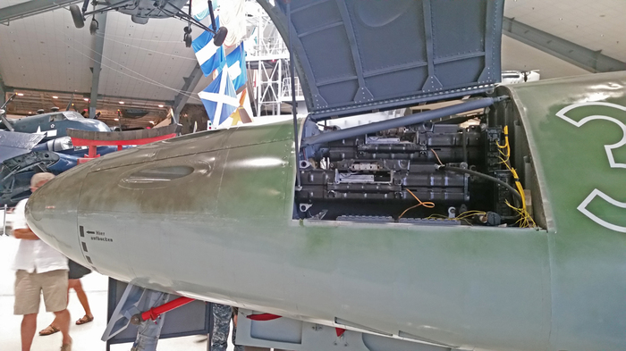 Стандартное вооружение Me.262 – четыре 30-мм пушки МК 108 – оказалось не очень удачным: пушки обладали плохой баллистикой и частенько отказывали. Так, низкая скорость снаряда – всего 805 м/с – приводила к большому рассеиванию очереди, и эффективная дальность стрельбы составляла не больше 150–200 метров.