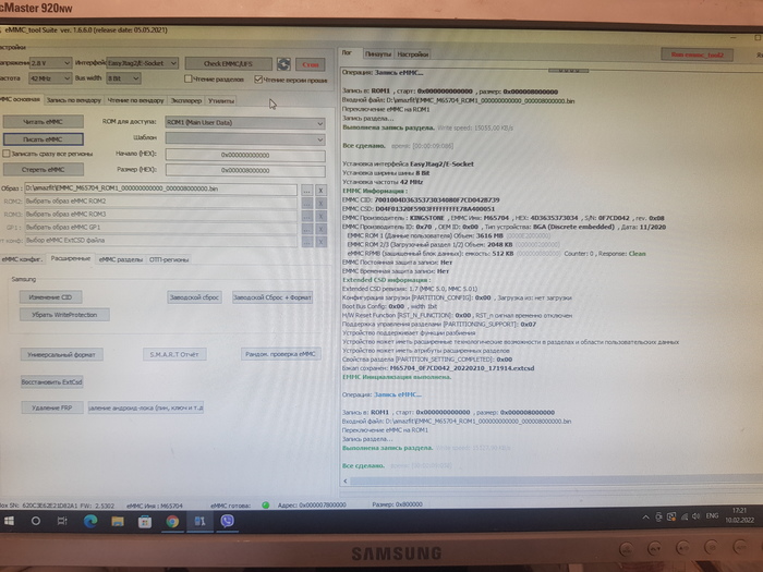 Да, вы правильно поняли, платы должны быть вместе, а они отдельно лежат. Плата с памятью отсоединена от межплатного шлейфа, а сама микросхема памяти снята. Спросите зачем? А затем, что я не нашел больше вариантов кроме как снять микросхему памяти и напрямую прошить ее на программаторе (дальше увидите). После того, как микросхема была демонтирована, кидаем ее в колодку программатора Z3X, считываем дамп памяти, скачиваем прошивку и заливаем ее по адресу в дампе с 0х400000. После этого сохраняем дамп и зашиваем его во флешку на том же Z3X.