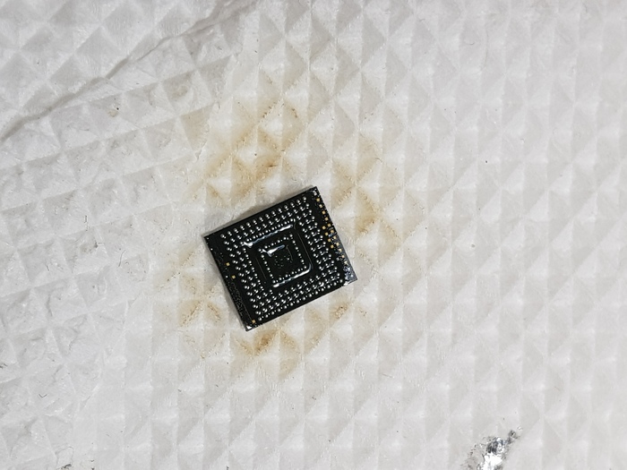 После этого накатываем шарики на микросхему и устанавливаем микросхему обратно на плату.