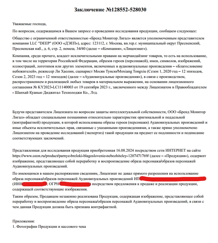 Претензия от правообладателя