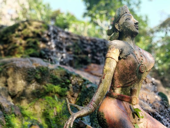 Здесь же, на вершине горы, можно найти странную статую с сломанной рукой.