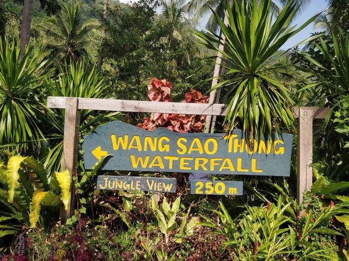 Смотрим водопад Wang Sao Thong Waterfall. Вход бесплатный, парковка байка 20 бат.