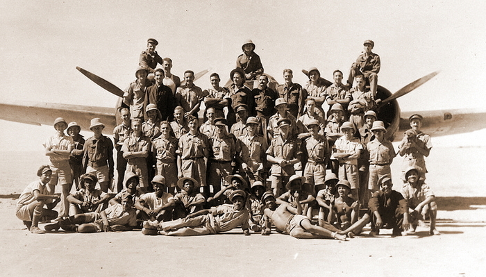 Группа (детачмент) майора де Вета была выделена из 15-й эскадрильи южноафриканских ВВС для самостоятельных действий. На фото, сделанном за несколько дней до описываемых событий, фактически весь состав детачмент.