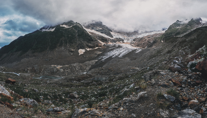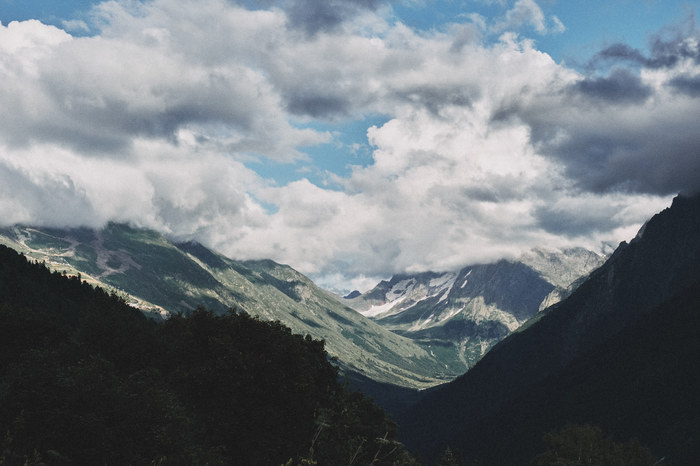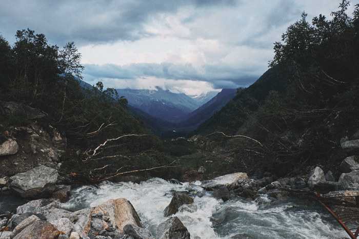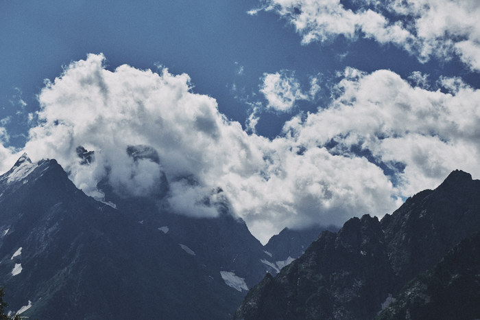 Если честно, горные пейзажи Приэльбрусья не оказали на меня сильного впечатления после Домбая. Я даже рад, что Приэльбрусье встретило нас такой погодой, ведь именно она помогла создать такую необычную атмосферу, которая отобразилась на фотографиях и моей памяти, тоже самое произошло и позже, в Архызе.