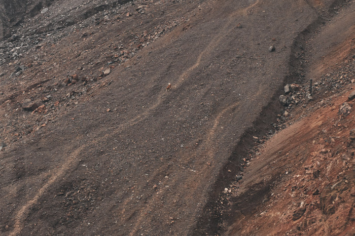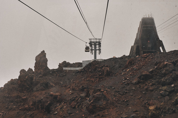 На этой высоте пейзаж уже изменился, грунт начал отдавать красноватыми оттенками + облачность добавляла атмосферности, поэтому поднимаясь в кабинке, у меня возникали ассоциации с марсианскими пейзажами.